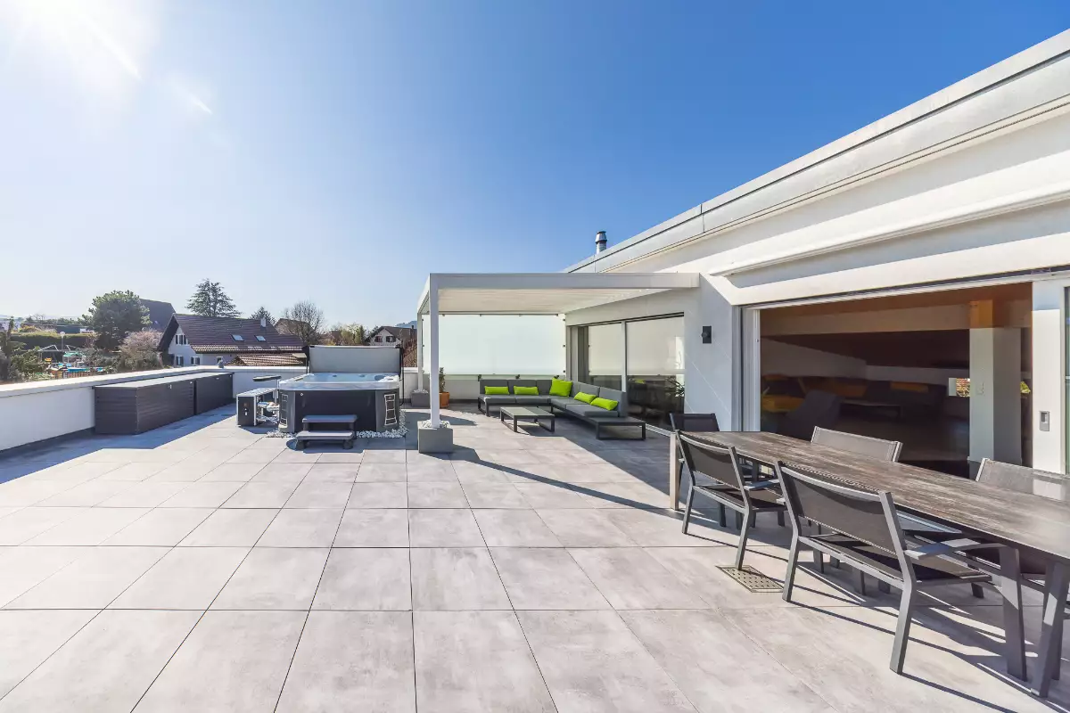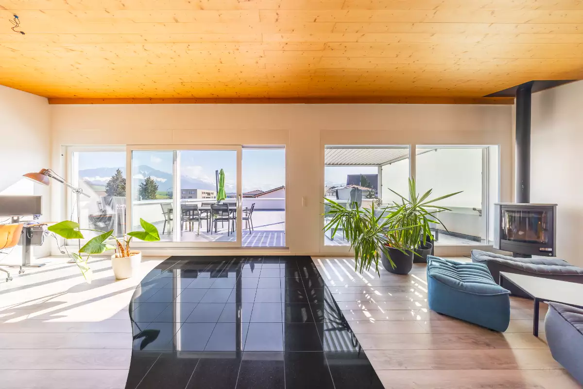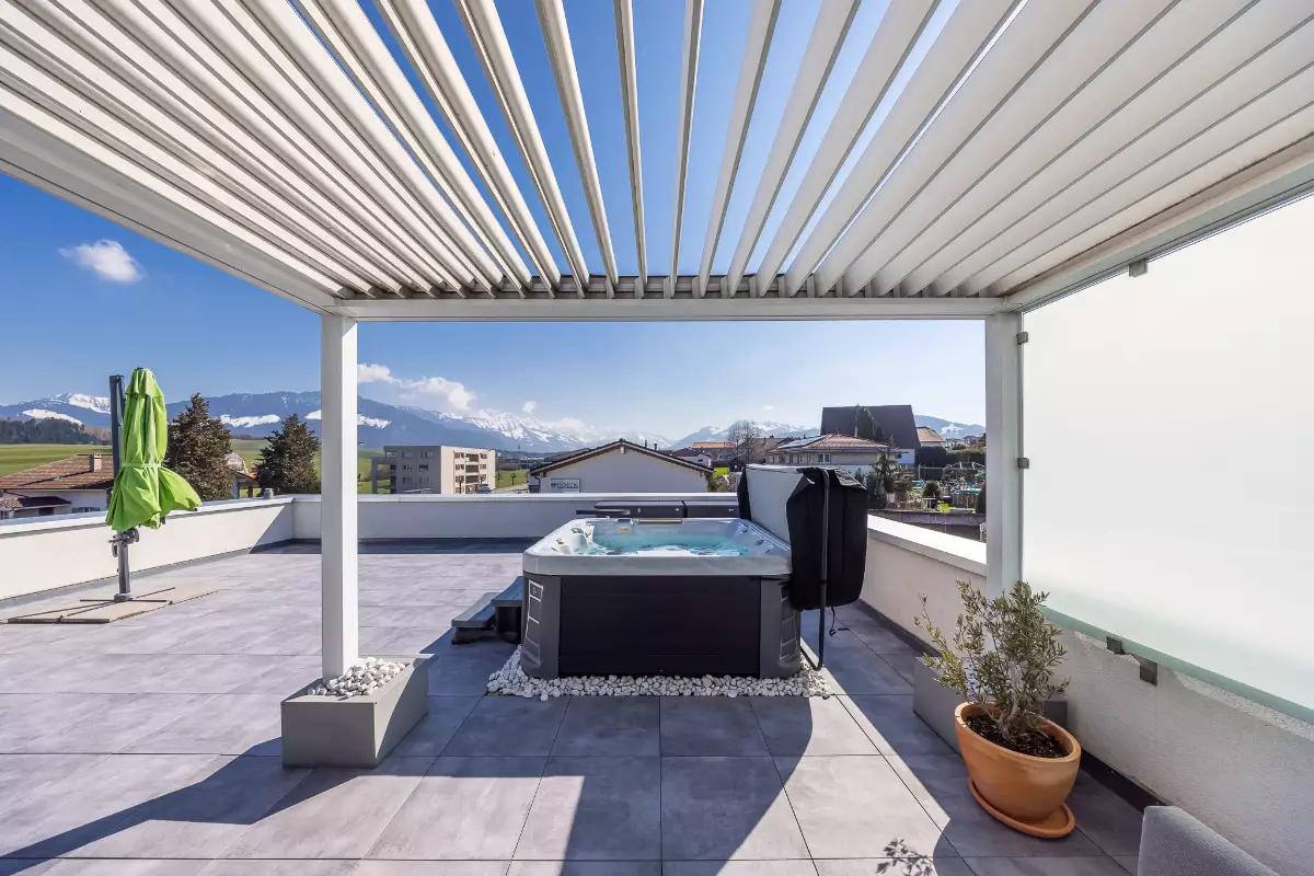 C'est dans la Commune prisée de Riaz que vous pourrez découvrir ce superbe appartement attique en duplex de 4½ pièces , à l’architecture contemporaine baignée de lumière. Ce bien séduit par son équilibre parfait entre élégance, confort moderne et fonctionnalité, offrant un cadre de vie aussi agréable que pratique, au quotidien. Sa localisation proche des voies de communication, ainsi que du centre-ville bullois, minimise les temps de déplacement, en vous offrant la qualité de vie de la campagne. En outre, les nombreux aménagements sur mesure — armoires murales, bibliothèques intégrées, pergola — apportent un niveau de confort particulièrement appréciable. L’espace nuit se compose de trois chambres, dont une élégante et vaste suite parentale avec salle de douche privative et dressing. À l’étage, vous découvrirez un vaste espace de vie aux volumes remarquables, sublimé par un poêle à bois, idéal pour créer une atmosphère chaleureuse lors des soirées d’hiver. Les larges ouvertures offrent une vue dégagée et privilégiée sur la Dent de Broc et la chaîne des Vanils, véritable tableau naturel au fil des saisons. La cuisine moderne, parfaitement agencée et prolongée par un économat (ouvert), allie esthétisme et fonctionnalité optimale. De surcroît, une spacieuse terrasse aménagée prolonge harmonieusement les espaces de vie. Véritable lieu de détente, elle accueille un jacuzzi et pergola, avec une vue dégagée sur les champs environnants et les Préalpes — un cadre idéal pour savourer des moments de quiétude ou partager des instants conviviaux en toute intimité, sans aucun vis-à-vis ! Finalement, une place de parc individuelle couverte, une place de parc extérieure et une cave complètent merveilleusement cet objet rare sur le marché. N'attendez plus pour une visite, nous sommes à votre écoute !