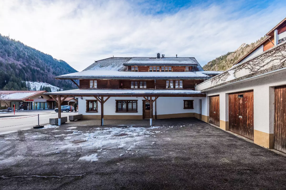 Au cœur du village de Jaun, cet immeuble mythique s’inscrit naturellement dans la vie locale, entre tradition, dynamisme commercial et histoire villageoise. Sa position en bordure de la route principale lui confère une présence marquée dans le paysage du village, idéale pour une activité commerciale bénéficiant d’un passage régulier, été comme hiver. Construit selon les codes architecturaux régionaux, le bâtiment abrite un café/commerce au rez-de-chaussée, ainsi que plusieurs logements, complétés par de vastes espaces de stockage. Les rénovations à réaliser permettraient d’adapter les surfaces commerciales/artisanales aux besoins spécifiques d'une future activité. Ce bien offre une combinaison harmonieuse entre activité économique, habitat et cadre alpin, au sein d’une commune prisée pour son authenticité et son attrait touristique. Cet immeuble mixte à Bellegarde (Jaun) en Gruyère représente une opportunité d'investissement attrayante et unique tant pour des investisseurs cherchant à diversifier leur portefeuille, que pour un propriétaire désirant exploiter l'arcade commerciale tout en bénéficiant de revenus locatifs grâce aux appartements.