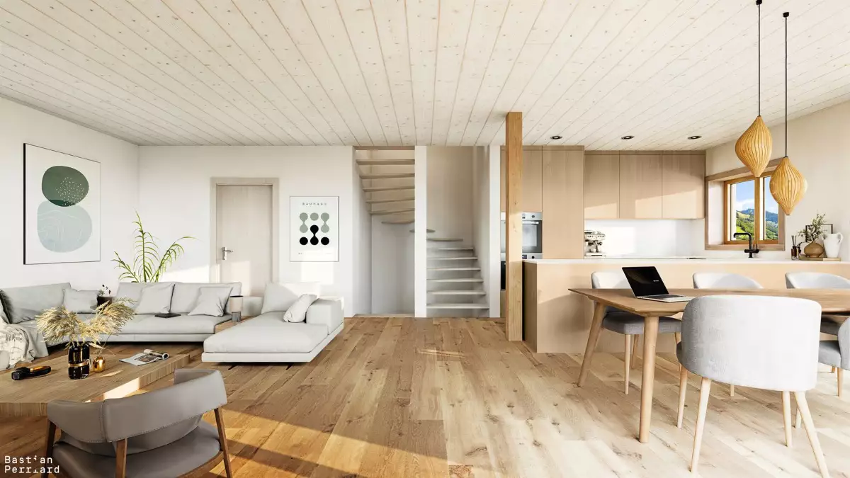 Dans un cadre idyllique, au cœur de la Vallée de la Jogne, découvrez ce projet neuf - composé de deux appartements duplex de 4½ pièces dans un chalet résidentiel - conçu pour une atmosphère contemporaine, avec des généreux espaces lumineux. Ces deux appartements duplex invitent à vivre la chaleur du bois et la douceur d’une lumière qui inonde chaque pièce, dès l'aube. Depuis les balcons/terrasses, le regard se perd sur les sommets environnants et s’attarde sur la vallée intacte, entre prairies fleuries et pentes enneigées. Dans ce projet neuf, la tradition alpine rencontre le confort contemporain raffiné, pour offrir un refuge où chaque instant devient précieux. Ce projet est réalisé par l'entreprise Chalet Schuwey AG, renommée pour la qualité de leurs réalisations et du choix des matériaux, ainsi que le soin apporté aux finitions. Les finitions sont à choix de l'acquéreur, et le permis de construire a déjà été octroyé. Alors offrez-vous le privilège rare d’habiter la montagne dans sa plus pure élégance : n'attendez plus, et contactez-nous !